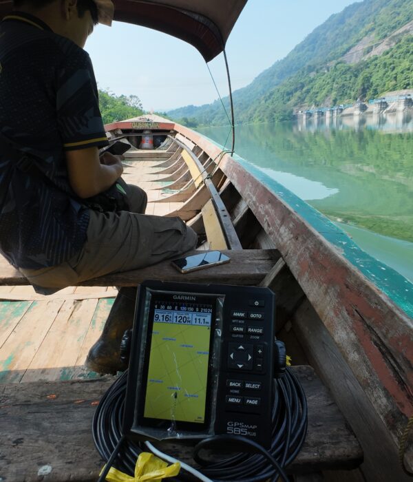 - A sonar instrument on an unmanned watercraft (USV) measures the depth of the riverbed with centimeter accuracy.